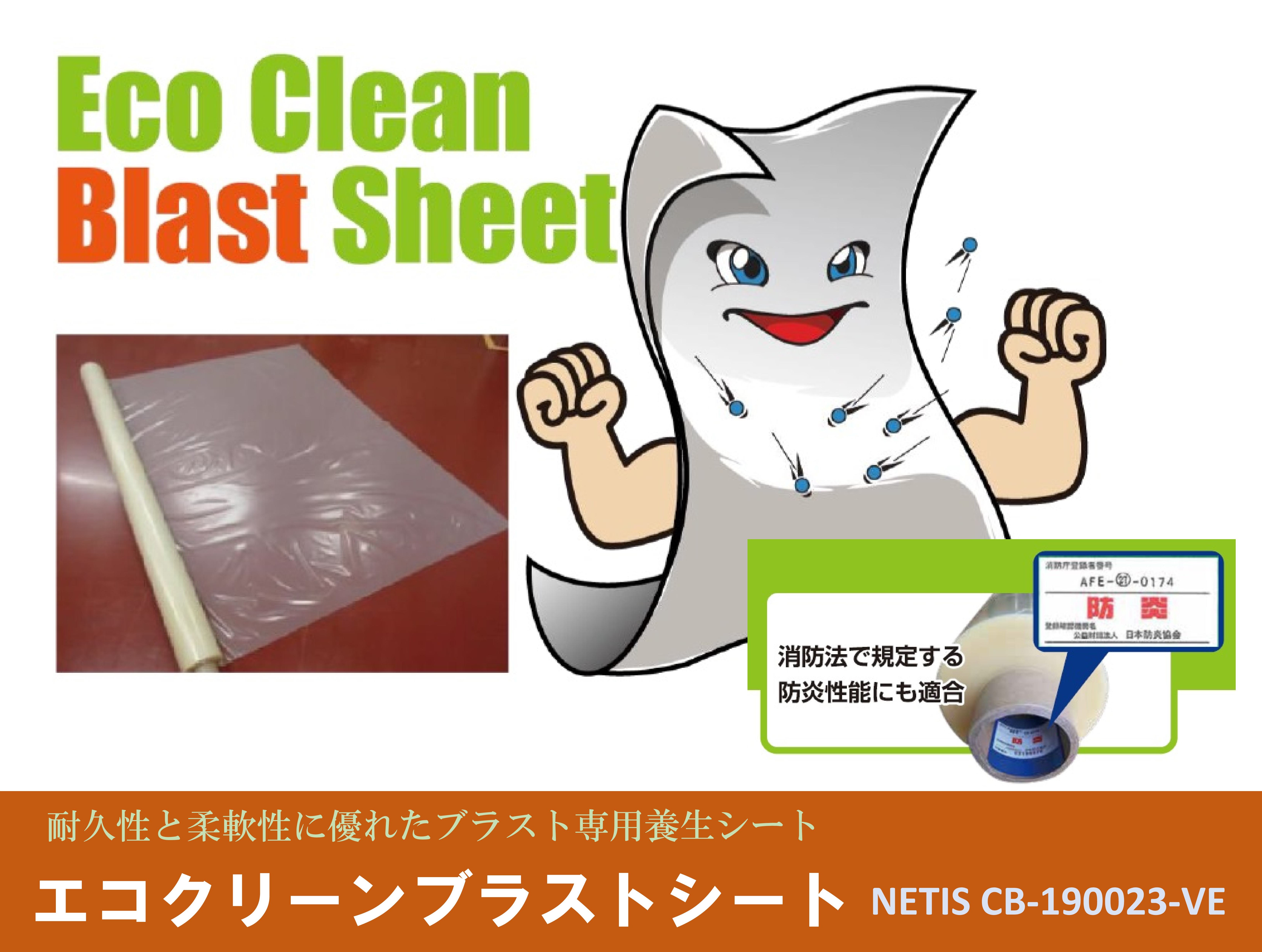 ④エコクリーンブラストシート(NETIS CB-190023-VE 活用促進技術):耐久性と柔軟性に優れた循環式ブラスト専用養生シート。消防法で規定する防炎性能にも適合。 - ブースのみどころ