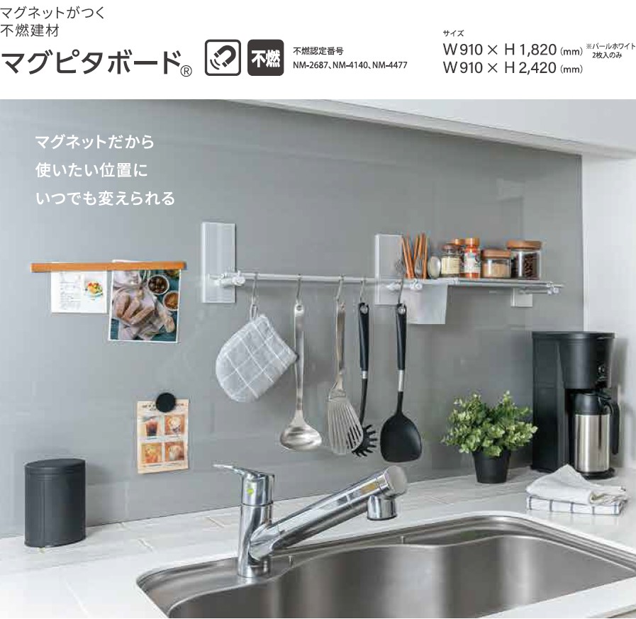 - マグネットが付く壁 マグピタボード、アイパネル、アイ不燃パネル