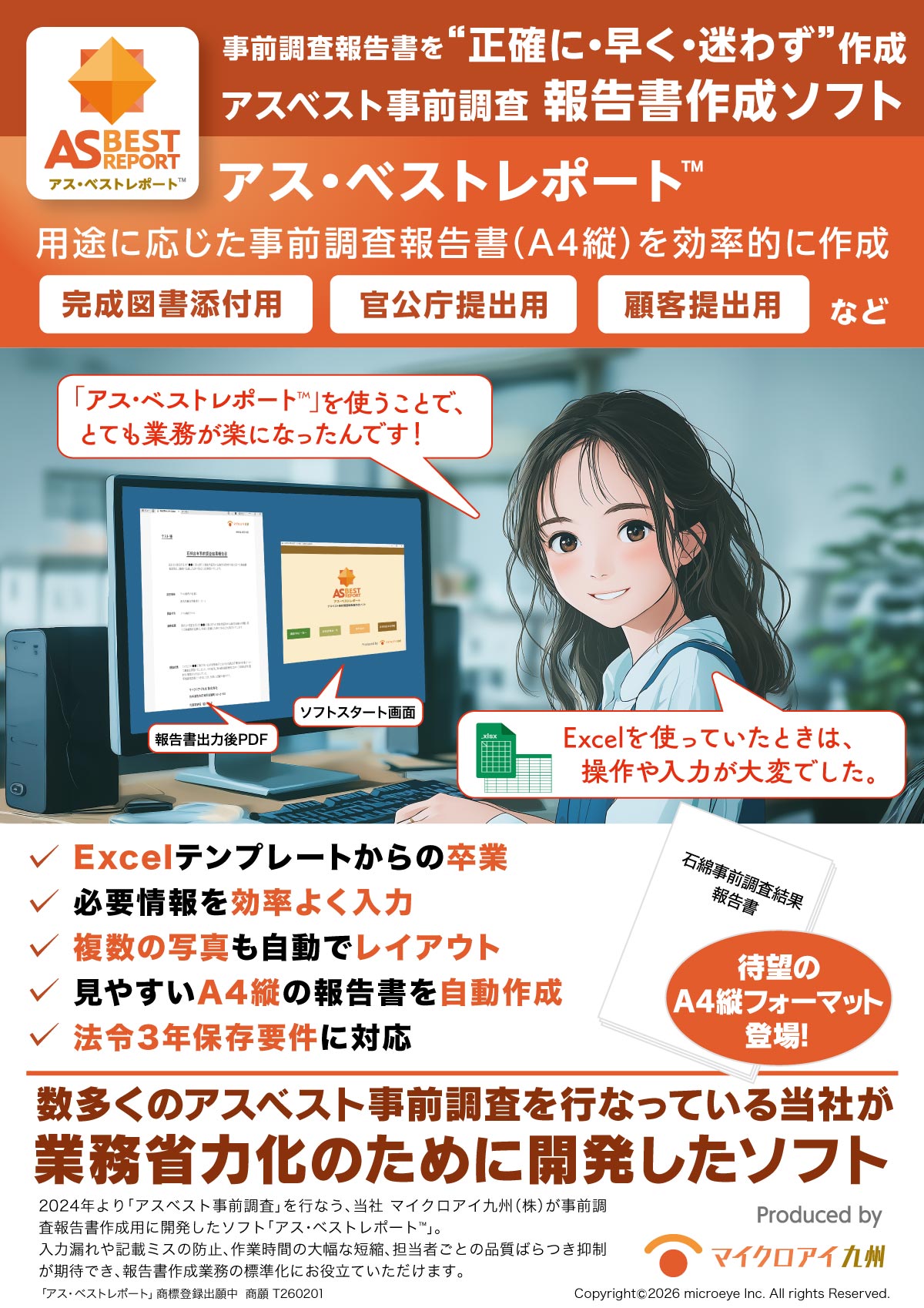 非常に煩雑な業務である報告書作成が楽になり、作成時間が1/3になります。