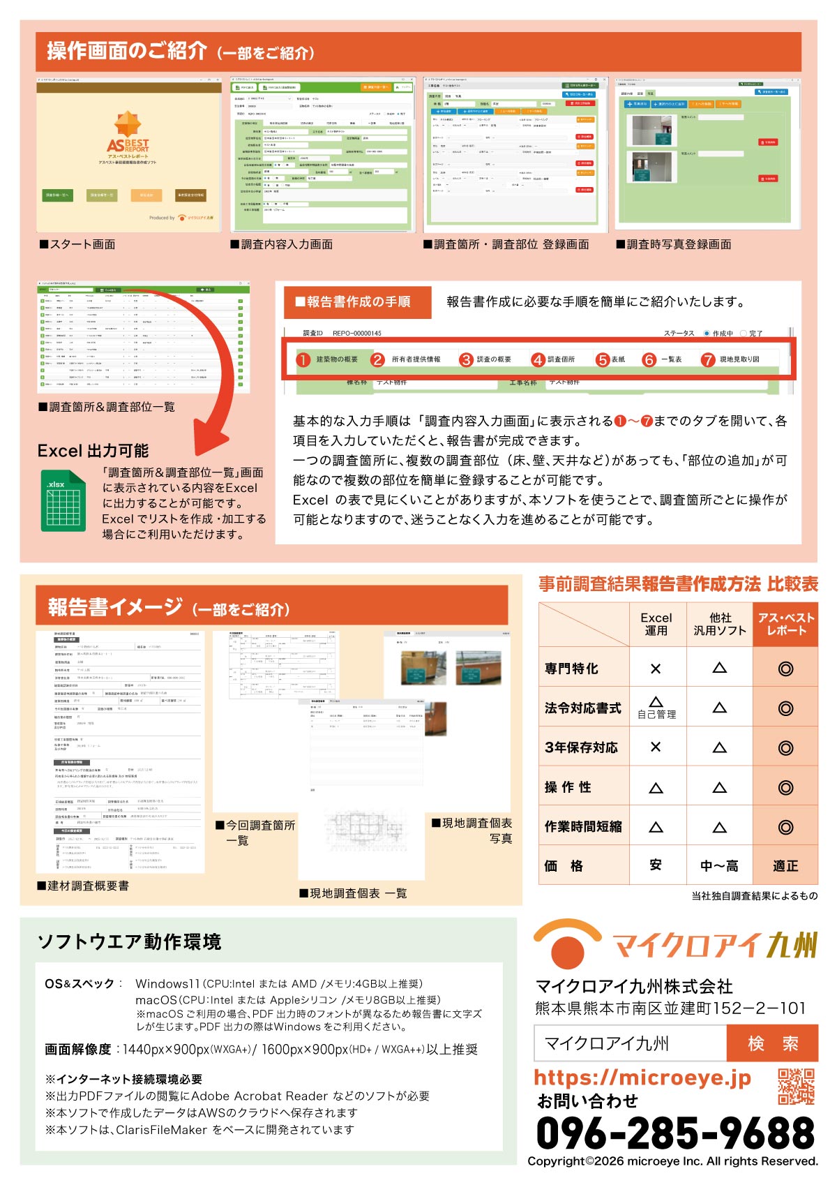 - ◎業界初※の事前調査結果報告書作成ソフトを、心を込めて展示会でご紹介いたします。