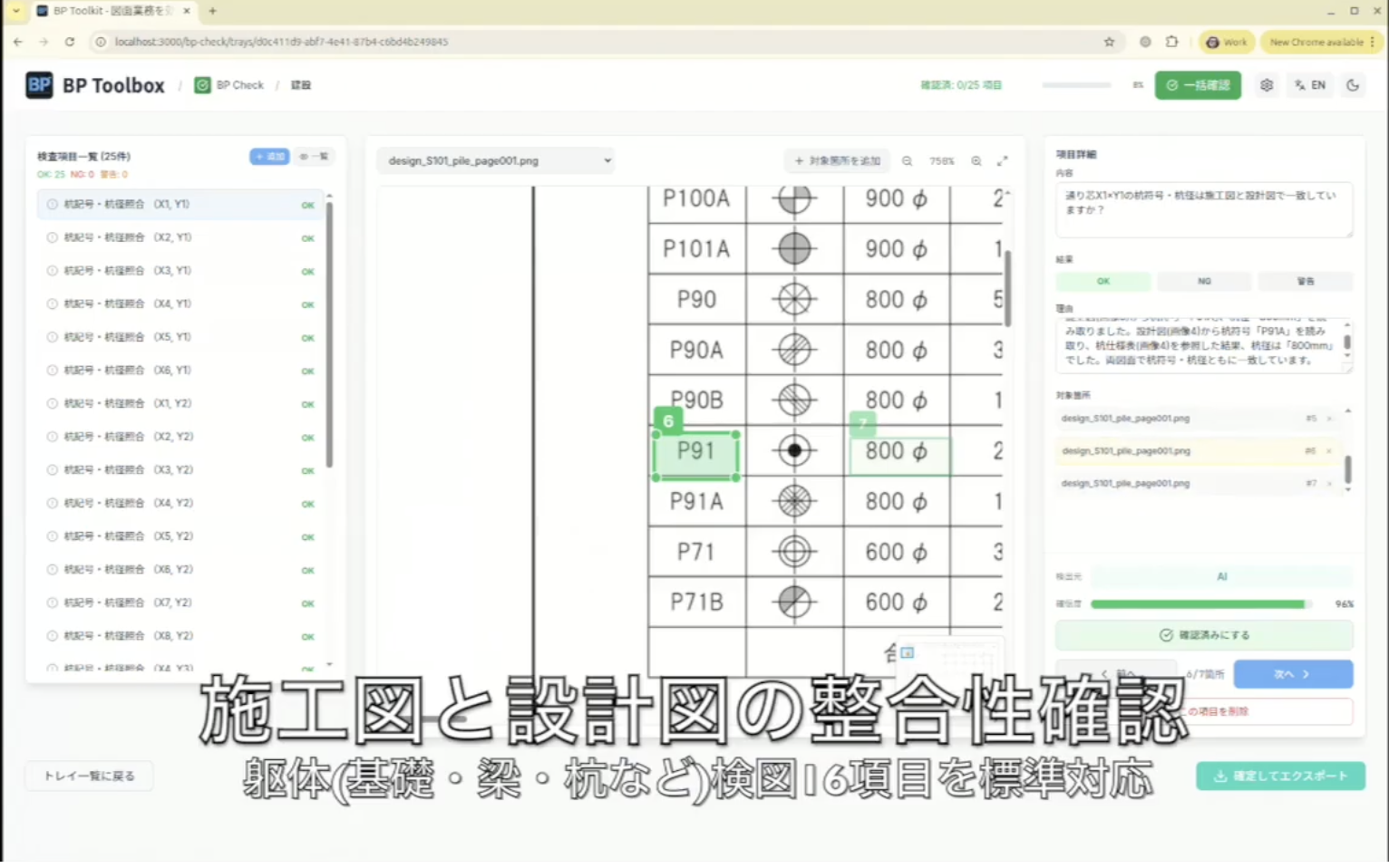 実際の図面を用いて、人手で行っていた業務がどのように自動化されるかをその場で確認可能です。複数図面の整合チェックや帳票出力まで一連の流れを実演し、導入後の業務イメージを具体的に掴んでいただけます。お持ちの図面での検証相談も可能です。 - URL