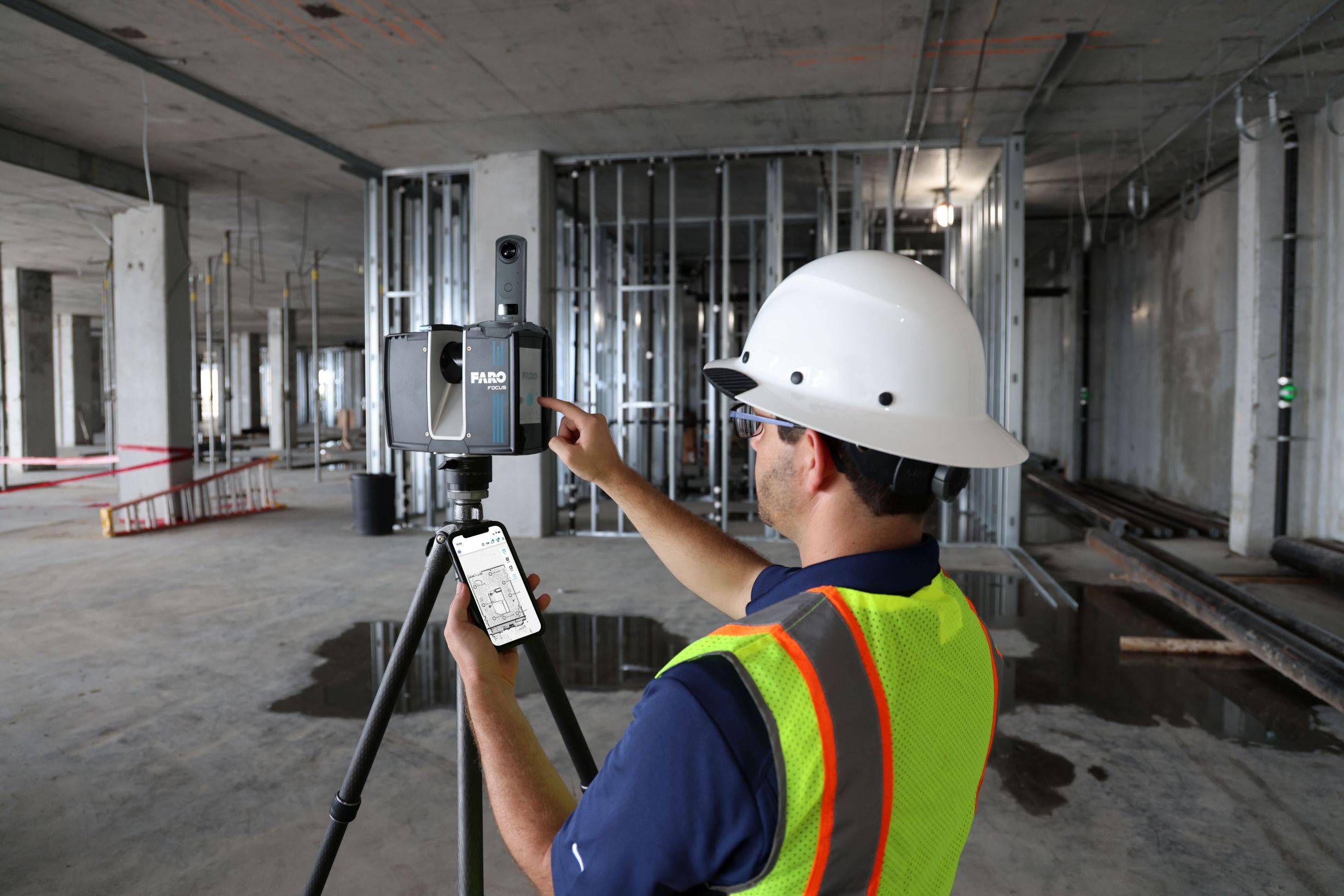 FAROの3Dレーザースキャナーは、現場の3D点群データおよび写真を記録し、クラウドプラットフォームSphere XGを使ってすべてのデータを一元管理し、過去の状況やCADモデルデータと比較し、効率的に工程を管理することができます。