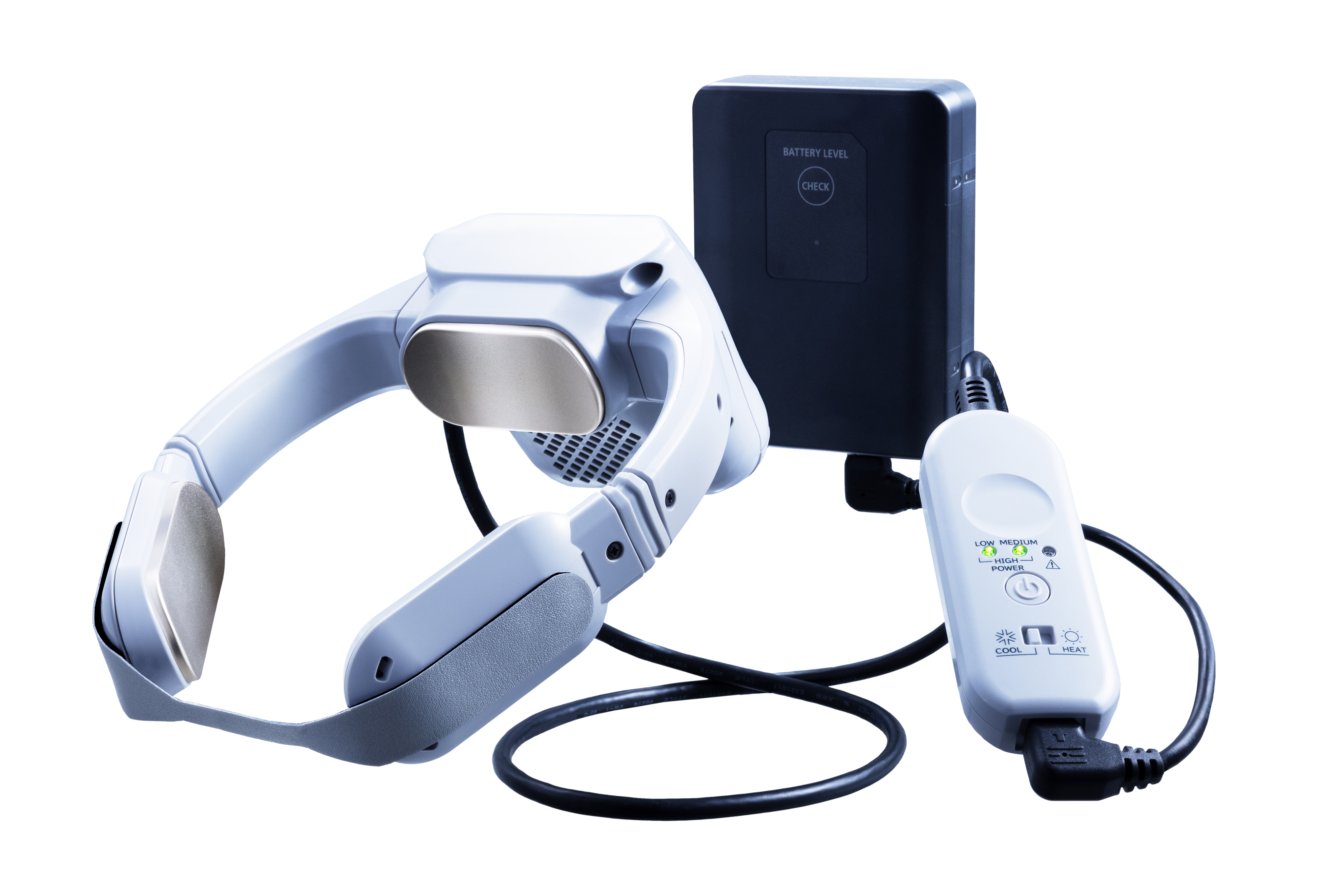 ②wearcon ウェアコン:首につけるエアコンで夏・冬も、過酷な環境で働く人を支えます。粉塵が舞う現場では、フあlん付き作業着が着用できませんが、ウェアコンであれば、安心して着用することができます。電源を入れた後すぐに冷え、しっかり冷却できるので、作業効率も向上します。 - URL