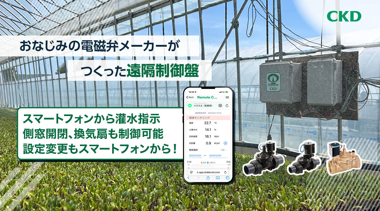 スマートフォンで遠隔操作、監視、自動制御できる制御盤で、多くの灌水バルブを制御可能。
