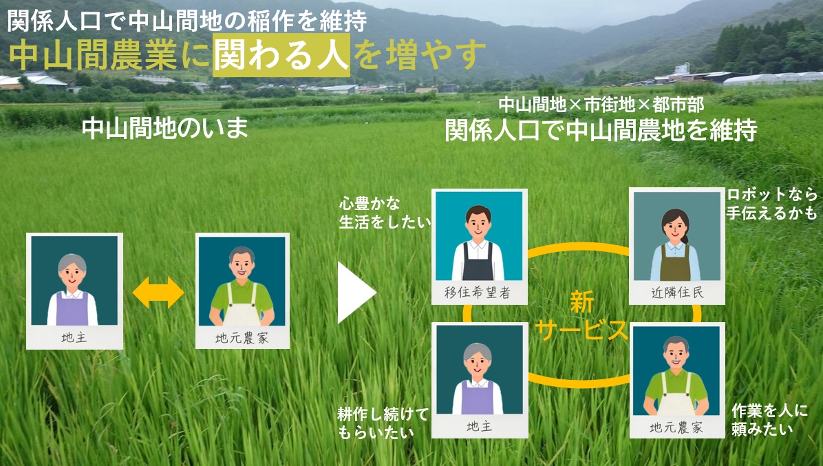 その発展形として、これらを総合した「ロボット開発×ロボット活用農業サービス」の1つの形として、市民参加や関係人口創出による中山間農地の維持をめざす構想についても展示予定です。 - URL