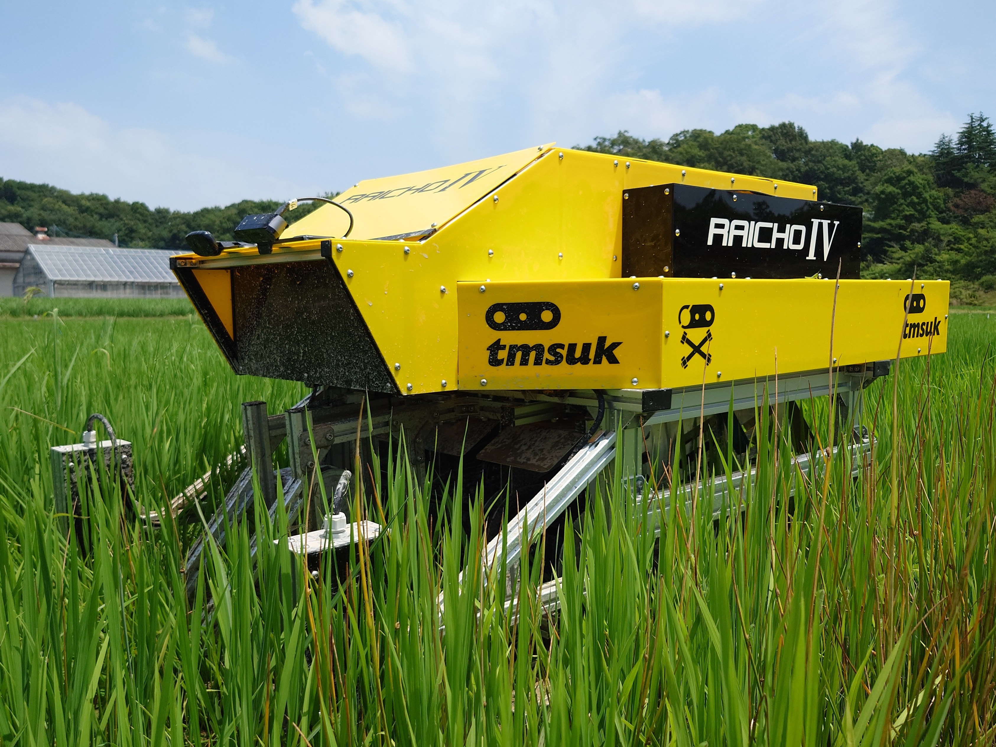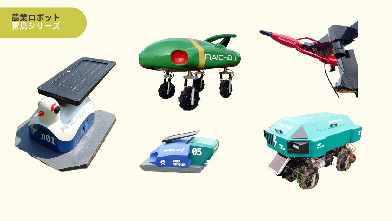 アイガモ農法を応用して雑草の光合成を抑える「雷鳥1号」、水面を滑走しながら複数台で種籾や肥料を播き、播けていないエリアを把握して最寄りのロボットが播種や施肥を行う「新型雷鳥1号」、収穫や耕起など力が要る作業をアタッチメント交換で行うことができる「雷鳥2号」、高圧放水で害獣を追い払う「雷鳥3号」をこれまで発表しました。これらのうち幾つかのロボットをブースにて展示予定です。