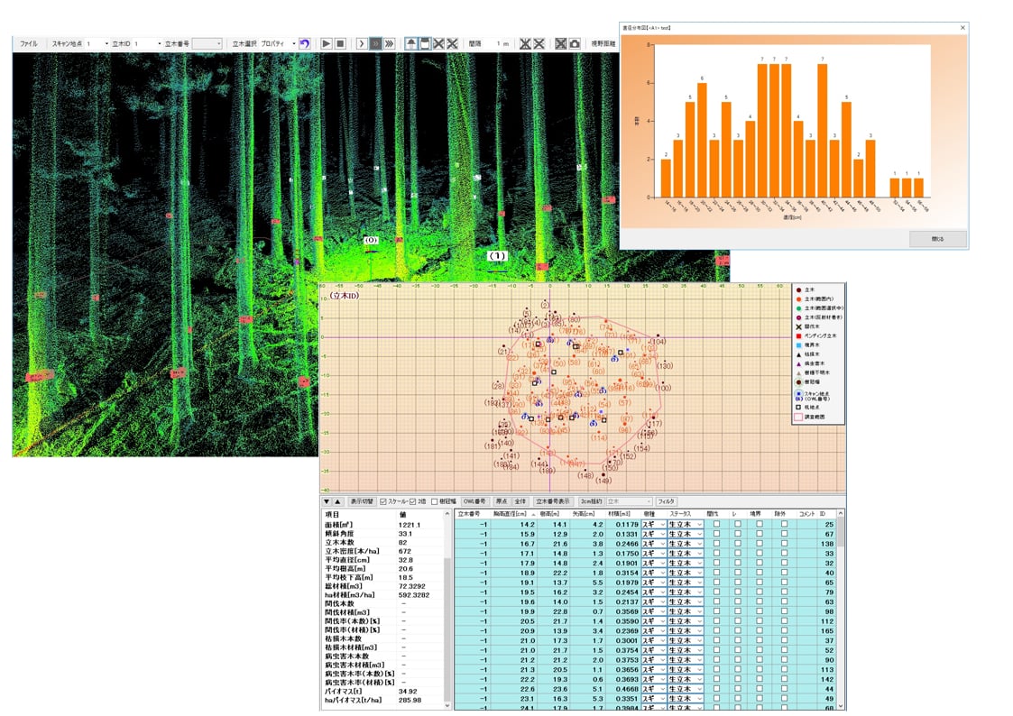 アドイン研究所の「森林3次元計測システム『OWL』」:軽量で操作が簡単な3Dスキャナーを使用して森林や果樹園の樹木配置や資源量を計測します。計測データを基に森林の状況を迅速に解析し、PC内にデータで再現します。 - URL