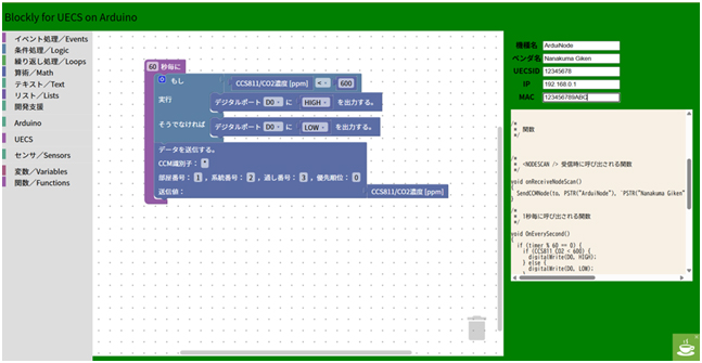 〇ブロックを積み上げる感覚でUECSプログラムが作成可能なローコード開発環境